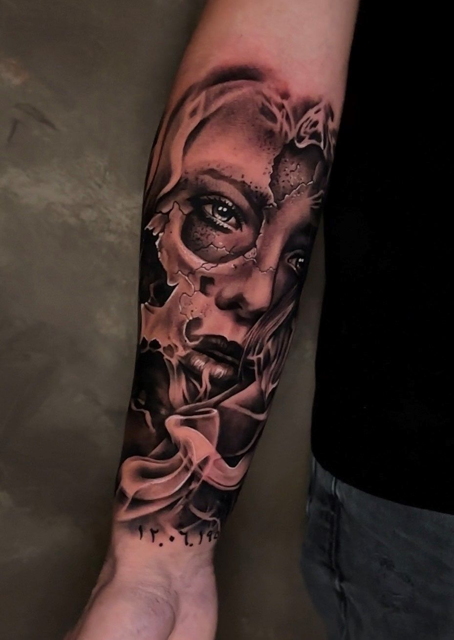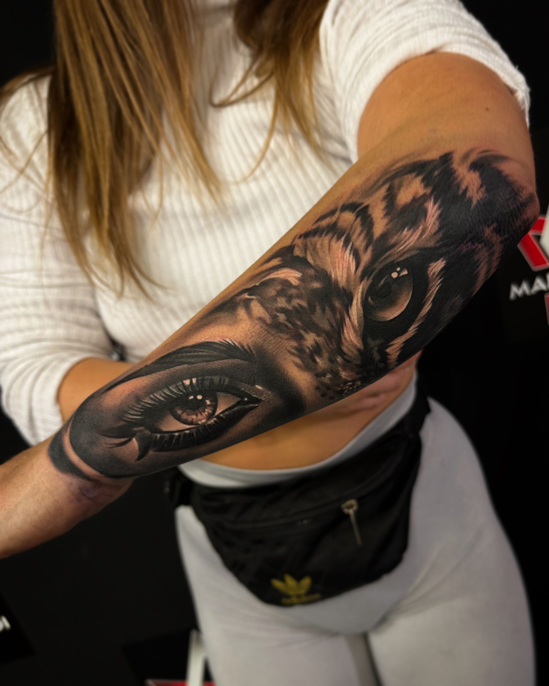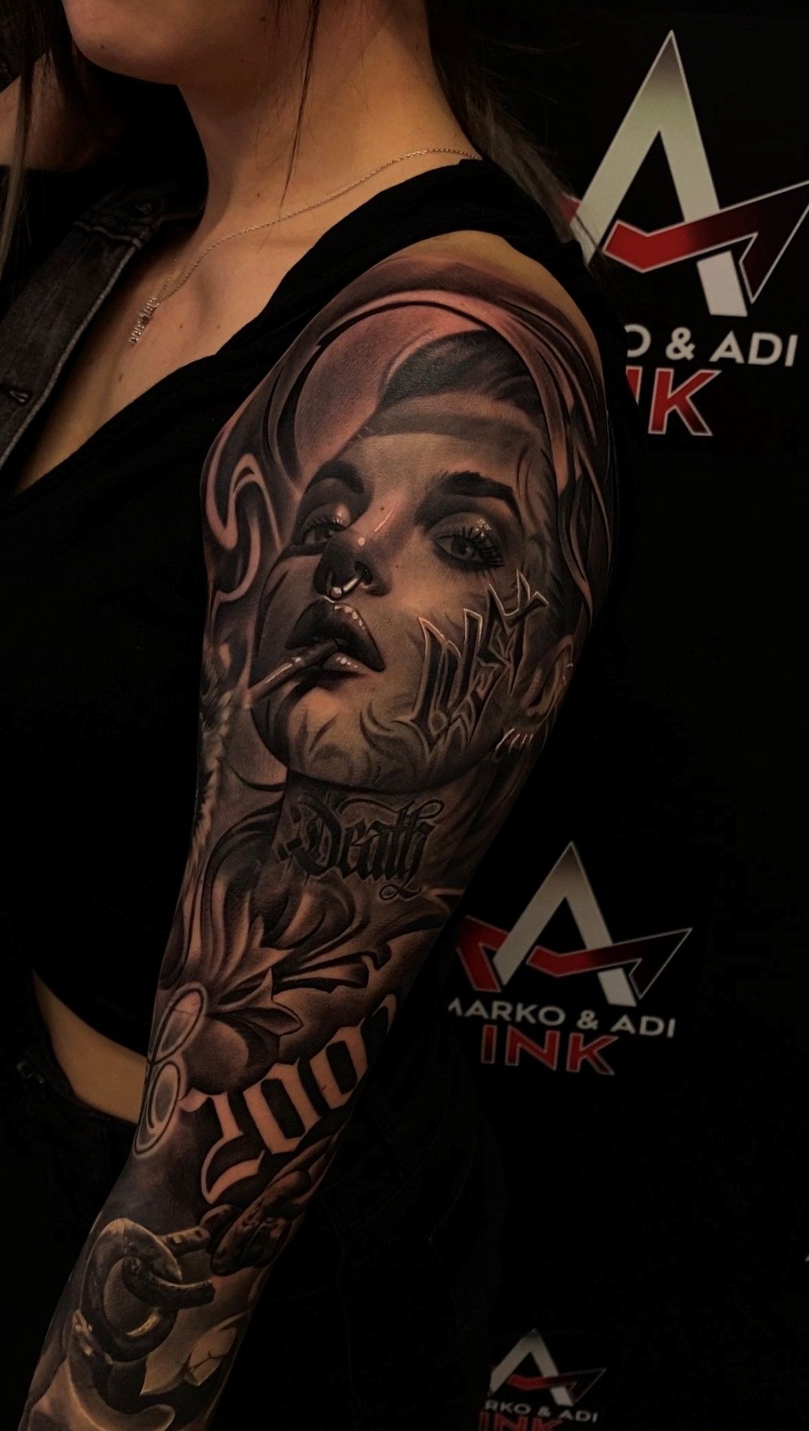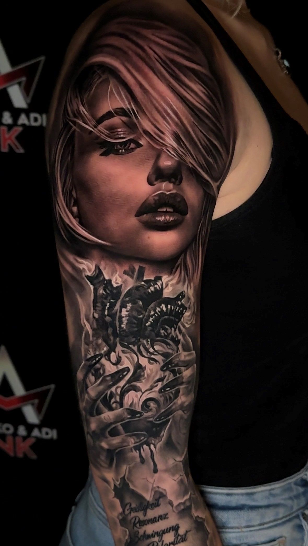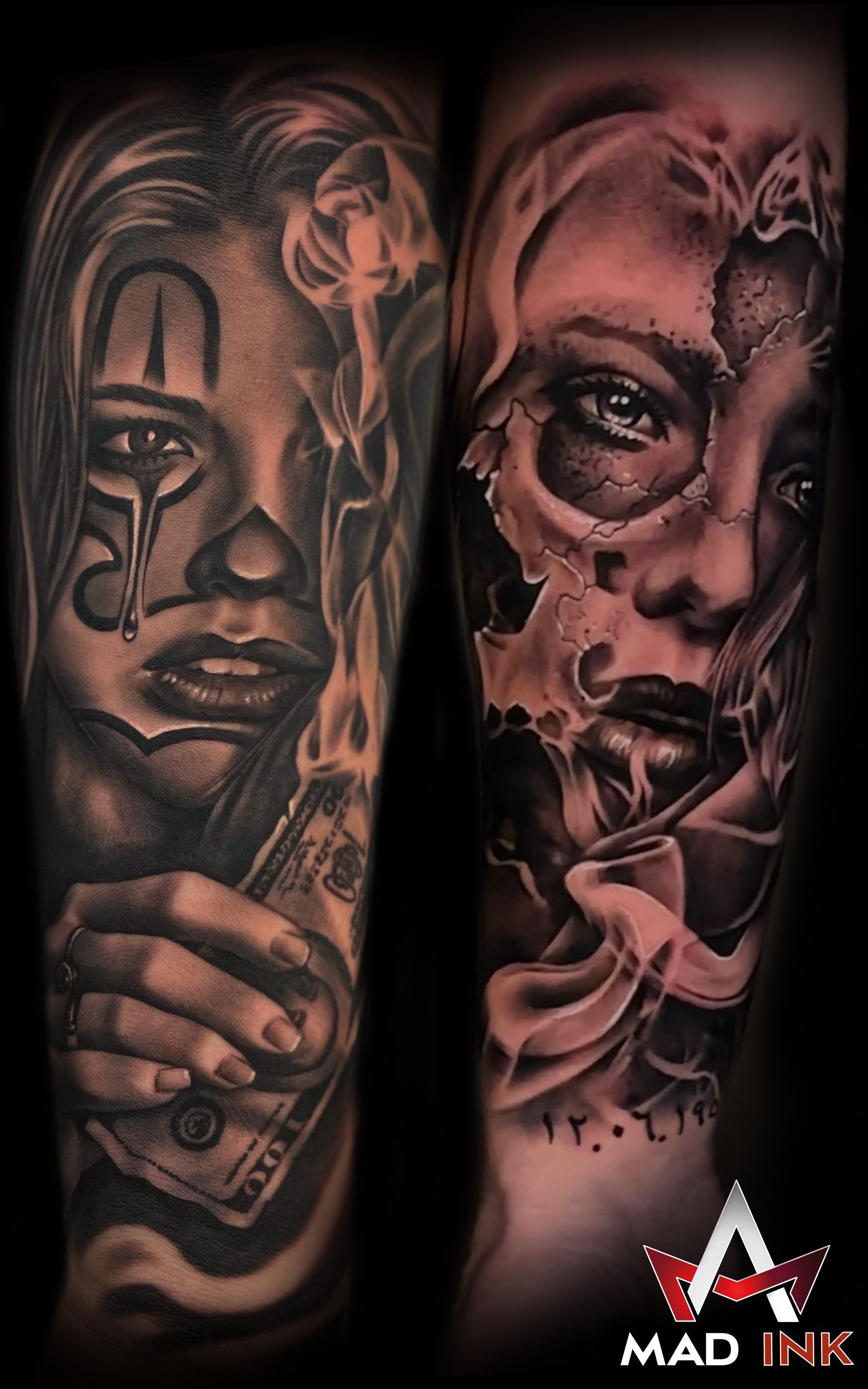 Trete ein in unsere Sammlung von Meisterwerken, die in Tinte und Farbe erstrahlen. Unsere Galerie ist ein Kaleidoskop der Kreativität, in dem preisgekrönte Designs auf individuelle Geschichten treffen. Hier fliessen nicht nur Farben, sondern auch Inspirationen und Emotionen. Von atemberaubenden Porträts bis zu faszinierenden abstrakten Designs – jede Leinwand, die Du hier siehst, erzählt von den einzigartigen Begegnungen zwischen Künstler und Kunde. Wir laden Dich ein, durch unsere Galerie zu flanieren, die Vielfalt zu bewundern und vielleicht Deine eigene Reise zu beginnen – eine Reise, die auf Deiner Haut, aber auch in Deinem Herzen Spuren hinterlassen wird. Tauche ein und lass Dich von der Schönheit der Individualität und Kreativität verzaubern. Hier bei MAD INK stechen wir nicht nur Tattoos – wir kreieren Meisterwerke für die Ewigkeit.