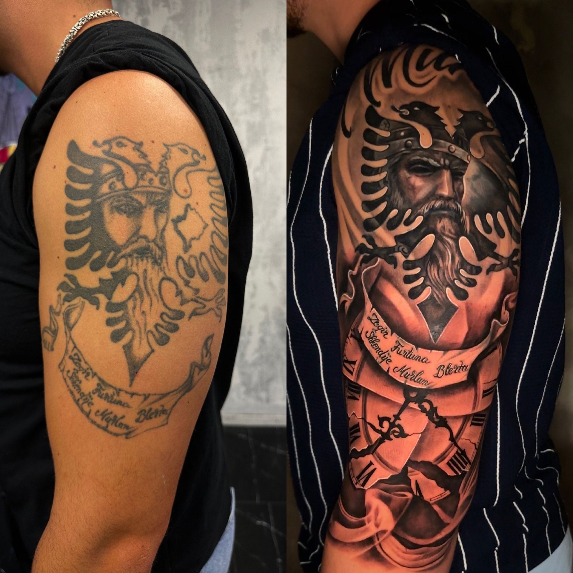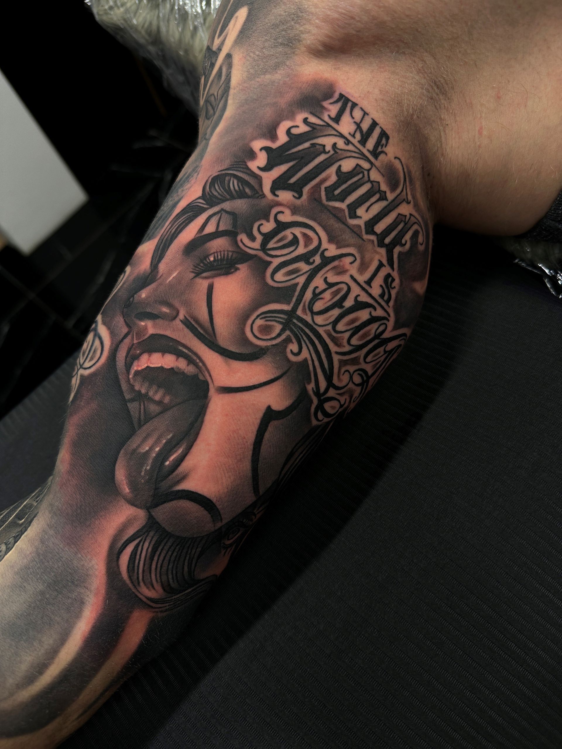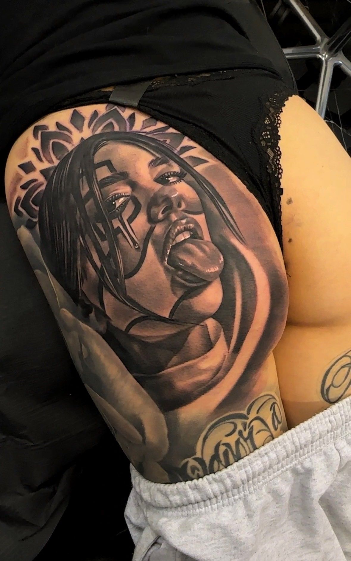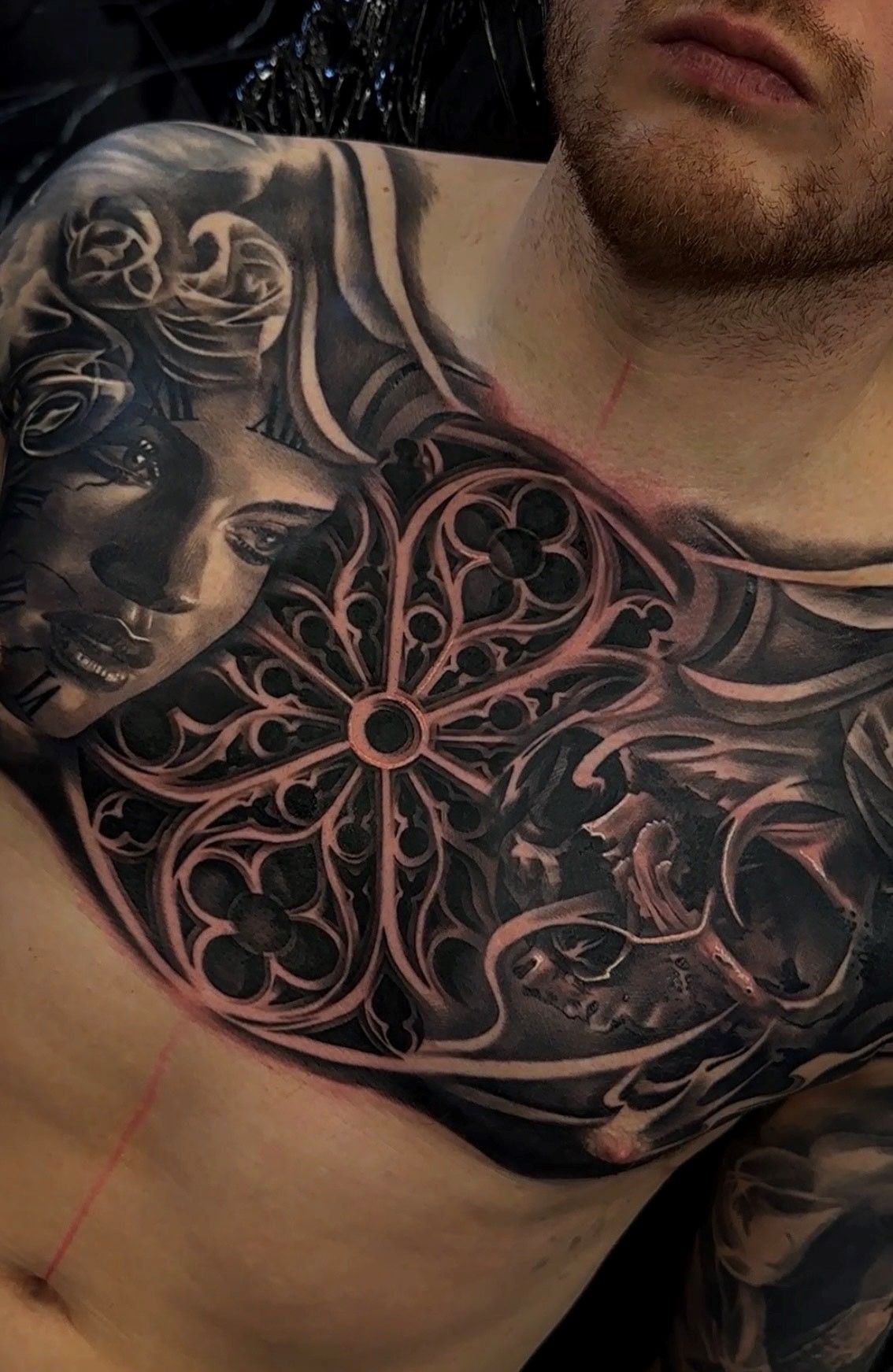 Trete ein in unsere Sammlung von Meisterwerken, die in Tinte und Farbe erstrahlen. Unsere Galerie ist ein Kaleidoskop der Kreativität, in dem preisgekrönte Designs auf individuelle Geschichten treffen. Hier fliessen nicht nur Farben, sondern auch Inspirationen und Emotionen. Von atemberaubenden Porträts bis zu faszinierenden abstrakten Designs – jede Leinwand, die Du hier siehst, erzählt von den einzigartigen Begegnungen zwischen Künstler und Kunde. Wir laden Dich ein, durch unsere Galerie zu flanieren, die Vielfalt zu bewundern und vielleicht Deine eigene Reise zu beginnen – eine Reise, die auf Deiner Haut, aber auch in Deinem Herzen Spuren hinterlassen wird. Tauche ein und lass Dich von der Schönheit der Individualität und Kreativität verzaubern. Hier bei MAD INK stechen wir nicht nur Tattoos – wir kreieren Meisterwerke für die Ewigkeit.