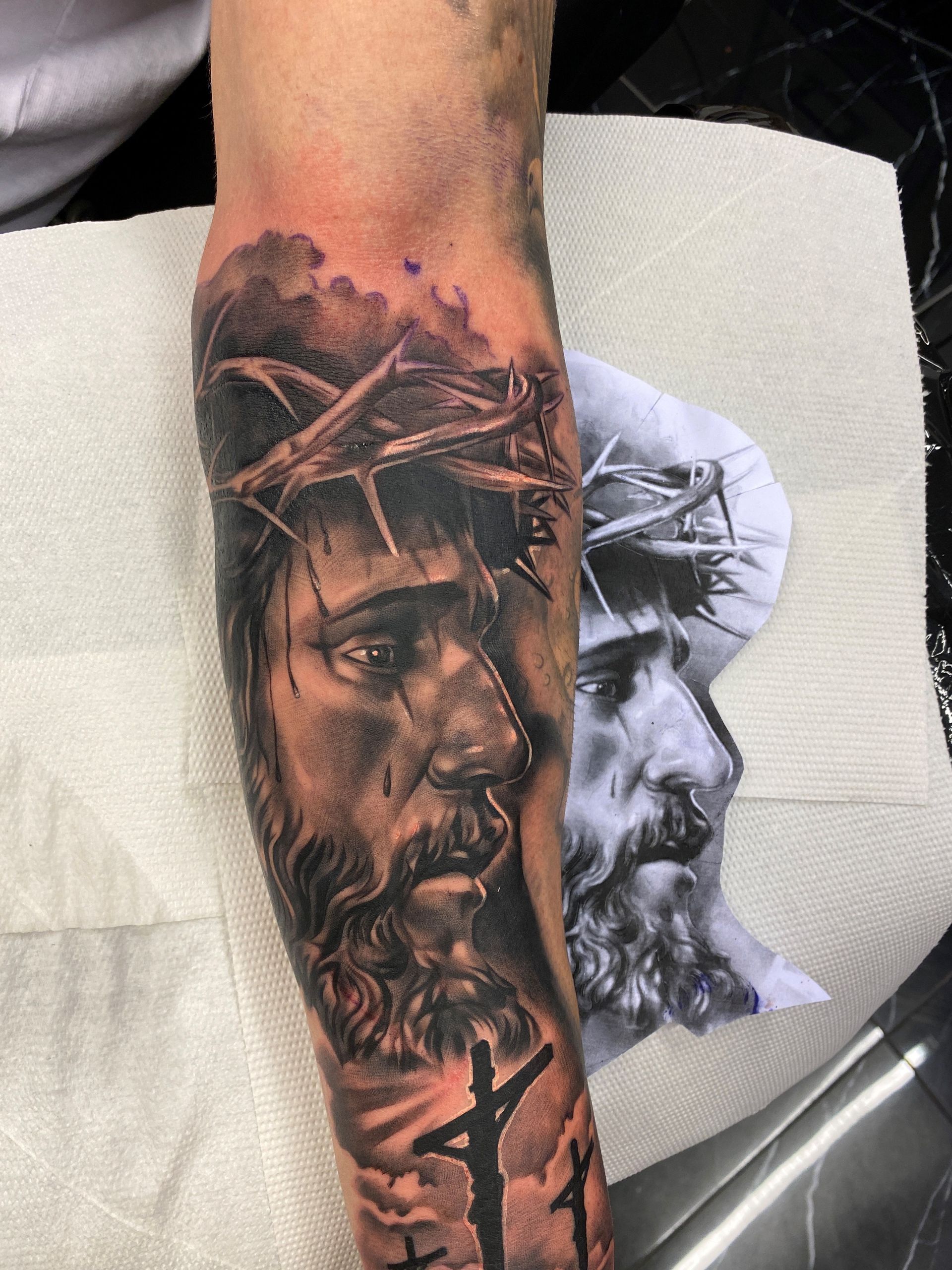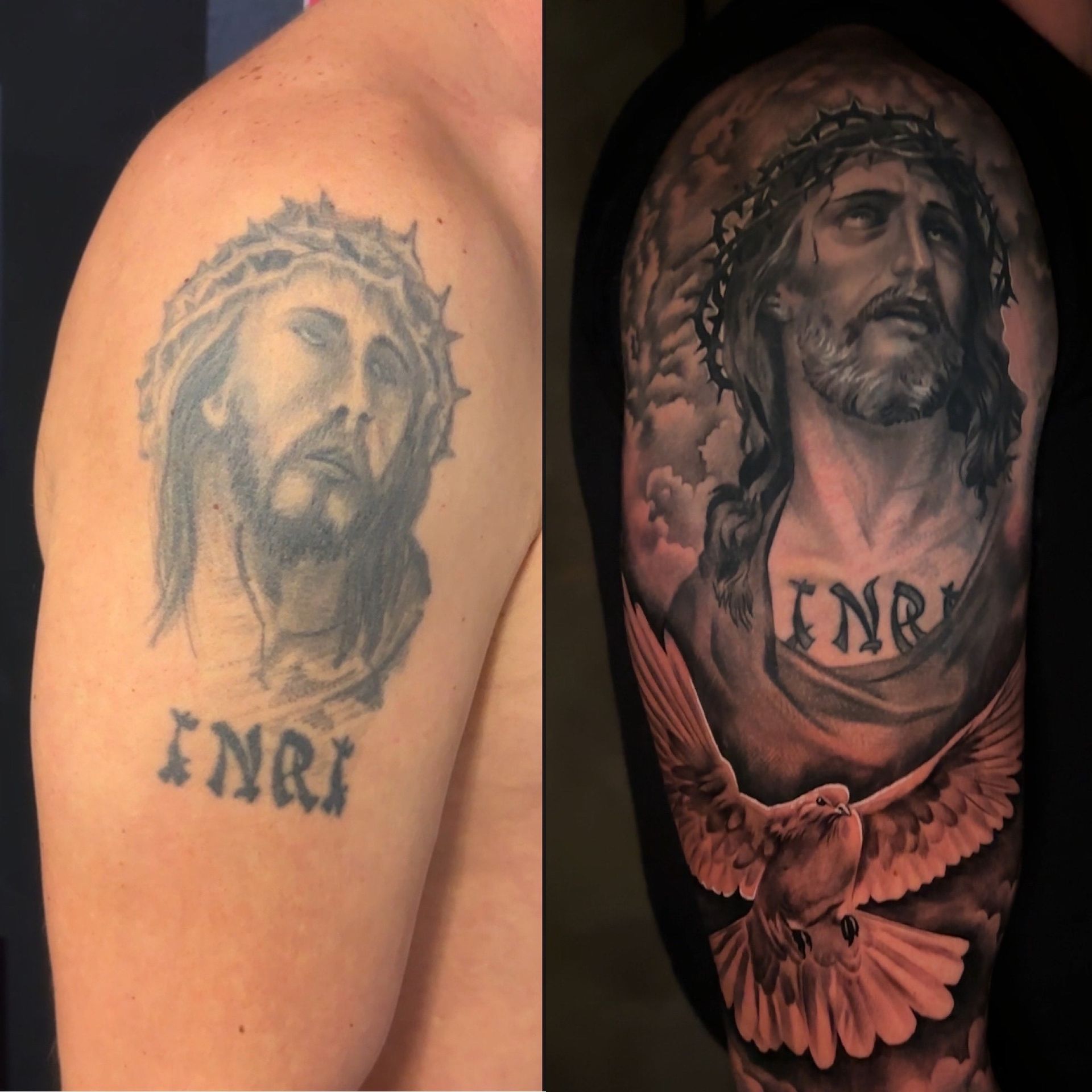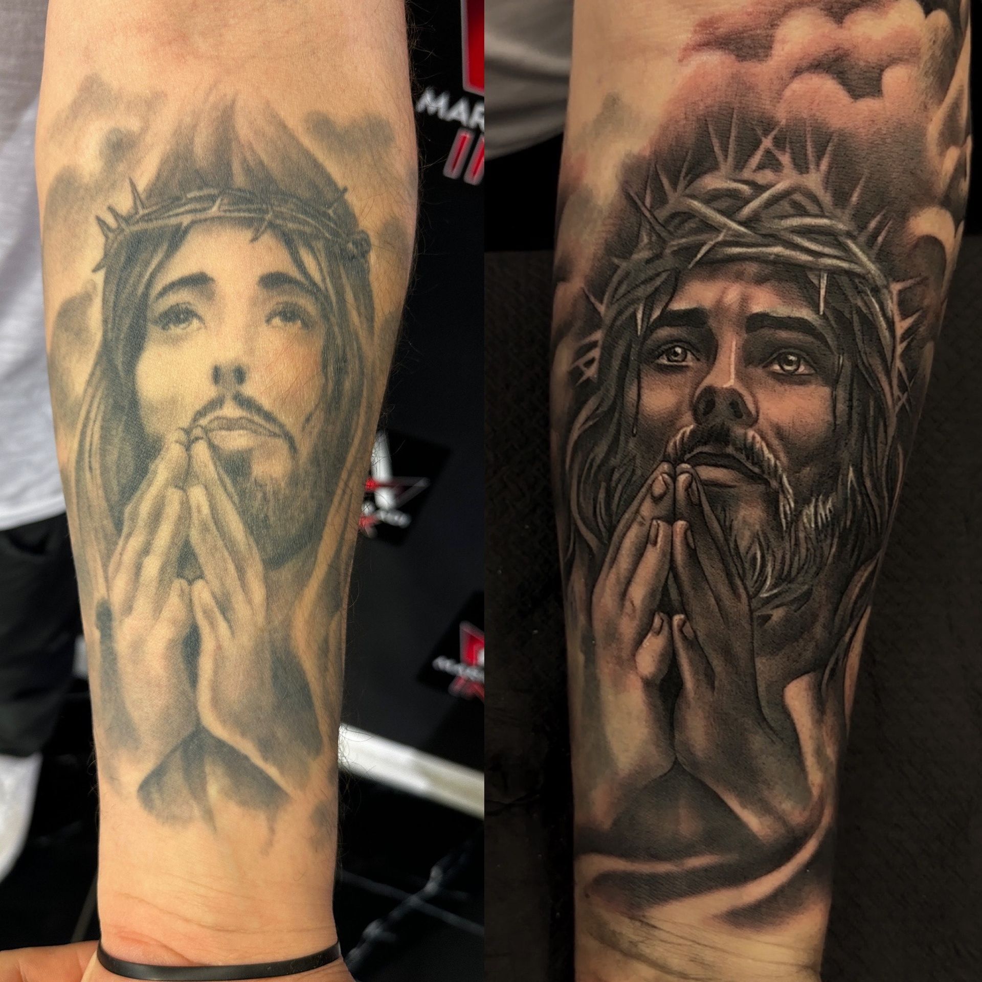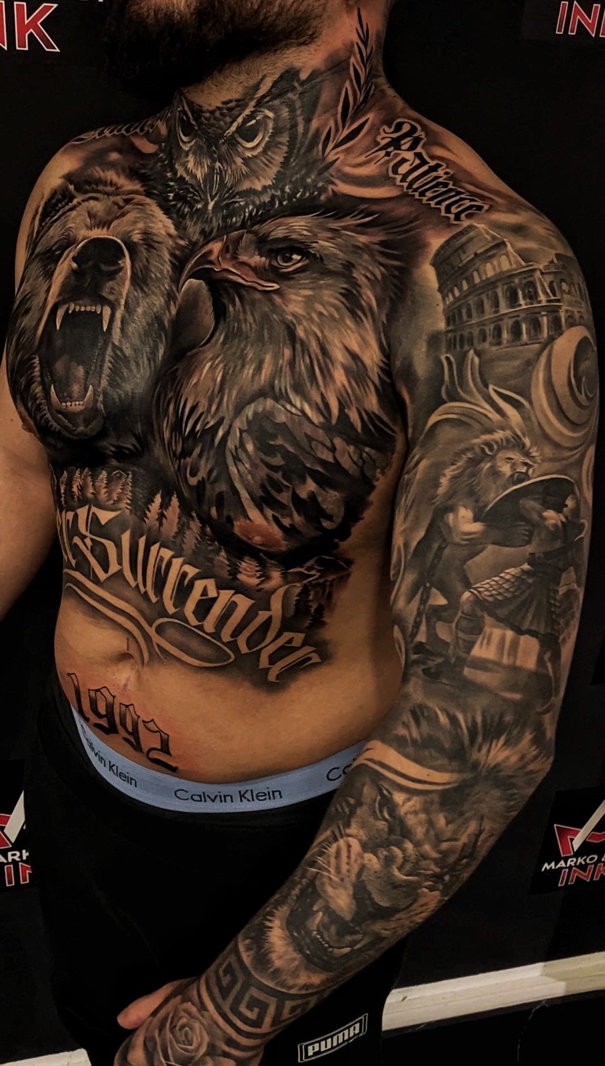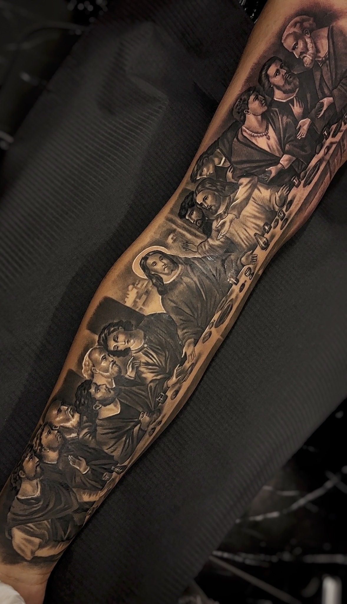 Trete ein in unsere Sammlung von Meisterwerken, die in Tinte und Farbe erstrahlen. Unsere Galerie ist ein Kaleidoskop der Kreativität, in dem preisgekrönte Designs auf individuelle Geschichten treffen. Hier fliessen nicht nur Farben, sondern auch Inspirationen und Emotionen. Von atemberaubenden Porträts bis zu faszinierenden abstrakten Designs – jede Leinwand, die Du hier siehst, erzählt von den einzigartigen Begegnungen zwischen Künstler und Kunde. Wir laden Dich ein, durch unsere Galerie zu flanieren, die Vielfalt zu bewundern und vielleicht Deine eigene Reise zu beginnen – eine Reise, die auf Deiner Haut, aber auch in Deinem Herzen Spuren hinterlassen wird. Tauche ein und lass Dich von der Schönheit der Individualität und Kreativität verzaubern. Hier bei MAD INK stechen wir nicht nur Tattoos – wir kreieren Meisterwerke für die Ewigkeit.
